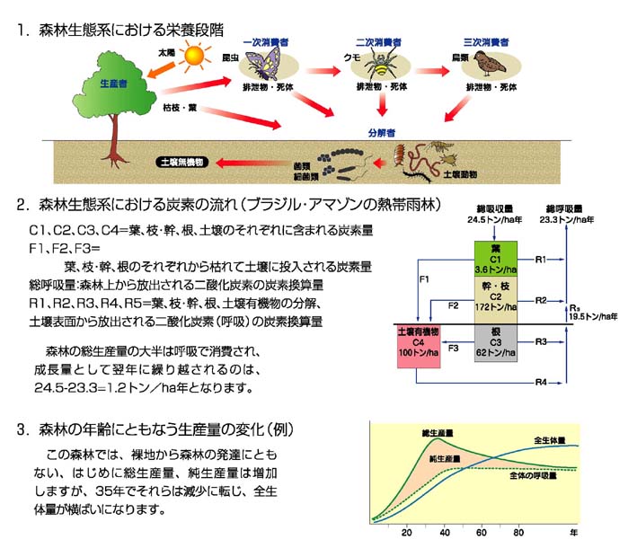 森林生態系は,樹木がつくりだす上下方向への複雑な構造のなかに,複雑で多様な生物の生活を育んでいる森林という”まとまり”なのです.