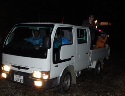 - 最近よく見かけるようになったシカの生息密度を調べるため,スポットライトによる夜間のシカ探しを行っています.初日は雄1頭,雌5頭でした.