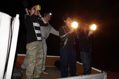 - 今年も春のシカ調査の時期になりました.車からライトで山を照らして頭数を数えます.
