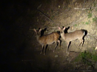 - 数が増えて森の植物への影響が心配されているシカの生息状況を年2回モニタリングしています.