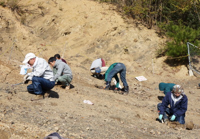 - 植物の進化の過程を体験すべく,中生代三畳紀の植物化石を発掘しました.